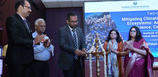 ലക്ഷദ്വീപിലെ ആവാസവ്യവസ്ഥയെ കാലാവസ്ഥാ വ്യതിയാനം സാരമായി ബാധിച്ചതായി കേന്ദ്ര ഫിഷറീസ് ഡെവലപ്മെന്റ് കമ്മീഷണര് ഡോ കെ. മുഹമ്മദ് കോയ ചൂണ്ടിക്കാട്ടി. കടല്പ്പുല്ല് നിറഞ്ഞ പ്രദേശങ്ങള് നശിച്ചു. ഇത് പുനഃസ്ഥാപിക്കേണ്ടത് അത്യാവശ്യമാണ്. കടല്പായല് കൃഷി ചെയ്യുന്ന് ലക്ഷദ്വീപിലെ മത്സ്യബന്ധന മേഖലയെ സഹായിക്കും. കാലാവസ്ഥാവ്യതിയാനം കാരണം 2000ത്തിന് ശേഷം തീരശോഷണം ഗണ്യമായി വര്ധിച്ചുവരികയാണെന്ന് സിക്കിം ഗവണ്മെന്റിന്റെ കാലാവസ്ഥാ വ്യതിയാന ഉപദേഷ്ടാവ് പ്രൊഫ. വിനോദ് ശര്മ്മ പറഞ്ഞു. അറബിക്കടലില് അടുത്തിടെയായി ചുഴലിക്കാറ്റുകളുടെ എണ്ണം കൂടിയിട്ടുണ്ട്. ഇത് തീരപ്രദേശങ്ങളില് ഉപ്പുവെള്ളം കയറുന്നതിന് കാരണമാകുകയും തീരദേശ മേഖലകളില് താമസിക്കുന്നവരുടെ ആരോഗ്യത്തെ ബാധിക്കുകയും ചെയ്യുന്നു അദ്ദേഹം പറഞ്ഞു.ഡോ സുരജിത് മഹാലനോബിസ്, ഡോ ശോഭ ജോ കിഴക്കൂടന്, ഡോ പൂജ ശര്മ്മ എന്നിവരും സംസാരിച്ചു.