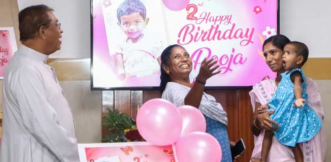 നേതൃത്വത്തില് ഉളള സംഘവും ചികിത്സയില് പങ്കാളികളായിരുന്നു. ലിസി ആശുപത്രി ഡയറക്ടര് ഫാ. പോള് കരേടന്റെ നേതൃത്വത്തില് കേക്ക് മുറിച്ച് മധുരം പങ്കു വച്ച് പൂജയുടെ രണ്ടാം പിറന്നാള് ആഘോഷിച്ചു. ജോ. ഡയറക്ടര്മാരായ ഫാ.റോജന് നങ്ങേലിമാലില്, ഫാ. റെജു കണ്ണമ്പുഴ, അസി.ഡയറക്ടര്മാരായഫാ. ഡേവിസ് പടന്നക്കല്, ഫാ. ജെറ്റോ തോട്ടുങ്കല് എന്നിവരും ആശുപത്രി ജീവനക്കാരും ചടങ്ങില് പങ്കെടുത്തു.പുത്തനുടുപ്പും പിറന്നാള് സമ്മാനങ്ങളും നല്കിയാണ് പൂജയെ ആശുപത്രിയില് നിന്നും യാത്രയാക്കിയത്.