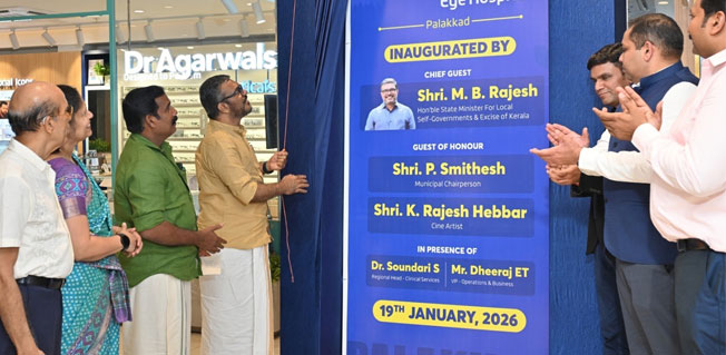 പാലക്കാട്:   ഡോ. അഗര്‍വാള്‍സ് ഐ ഹോസ്പിറ്റല്‍ പാലക്കാട്ടെ കോഴിക്കോട് ബൈപാസ് റോഡിലെ എച്ച്.എം. ടവേഴ്‌സില്‍ പ്രവര്‍ത്തനം ആരംഭിച്ചു.  ഗുണമേന്മയുള്ള ആരോഗ്യപരിചരണവും കാഴ്ചശക്തിയുടെ പ്രാധാന്യവും സമൂഹ ക്ഷേമത്തില്‍ നിര്‍ണായകമാണെന്ന് ആശുപത്രിയുടെ ഉദ്ഘാടനം നിര്‍വഹിച്ചുകൊണ്ടു മന്ത്രി എം.വി. രാജേഷ് പറഞ്ഞു. പാലക്കാട് കേന്ദ്രം ആരംഭിച്ചതിലൂടെ പ്രദേശവാസികള്‍ക്ക് സമീപത്തുതന്നെ ഉയര്‍ന്ന നിലവാരത്തിലുള്ള നേത്ര ചികിത്സ ലഭ്യമാകുന്നതായും, ഇത്തരം സംരംഭങ്ങള്‍ സംസ്ഥാനത്തിന്റെ ആരോഗ്യരംഗം കൂടുതല്‍ ശക്തിപ്പെടുത്തുമെന്നും മന്ത്രി അഭിപ്രായപ്പെട്ടു.