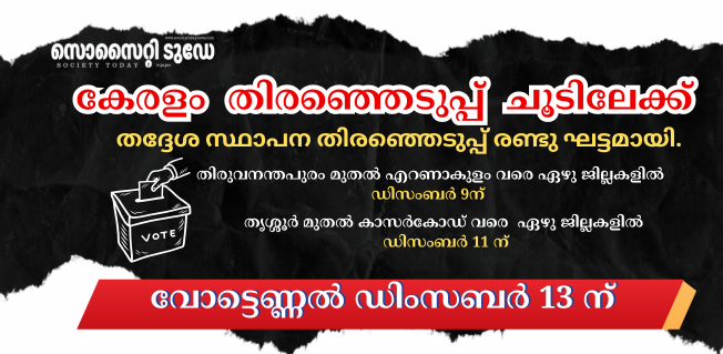 കേരളം തിരഞ്ഞെടുപ്പ് ചൂടിലേക്ക്; തദ്ദേശ സ്ഥാപന തിരഞ്ഞെടുപ്പ്   ഡിസംബര്‍ ഒമ്പതിനും, 11 നും