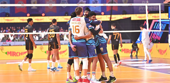 അമരീന്ദര്പാല് സിങിന്റെ മികച്ച പ്രതിരോധം കൂടിയായതോടെ കൊച്ചി ആദ്യ സെറ്റ് നേടി. എറിന്റെ മികച്ച സെര്വുകള് രണ്ടാം സെറ്റിലും കൊച്ചിക്ക് മികച്ച തുടക്കം നല്കി. എന്നാല്, നന്ദഗോപാലും അഖിനും അഹമ്മദാബാദിനായി കളത്തിലിറങ്ങിയതോടെ കളി മാറി. അഖിന്റെ കരുത്തുറ്റ ബ്ലോക്കുകള് അവര്ക്ക് രണ്ടാം സെറ്റ് നേടിക്കൊടുത്തു. ജസ്ജോദിന്റെയും ഹേമന്തിന്റെയും പ്രകടനങ്ങളാണ് മൂന്നാം സെറ്റില് നിര്ണായകമായത്. നിക്കോളാസ് മറെച്ചല് ബാക്ക് കോര്ട്ടില് കരുത്ത് കാട്ടിയതോടെ മൂന്നാം സെറ്റ് ബ്ലൂസ്പൈക്കേഴ്സിന്റെ നിയന്ത്രണത്തിലായി. നാലാം സെറ്റിലും ഹേമന്ത് ആക്രമണം തുടര്ന്നു. ലിബറോ അലന് ആഷിക്കിന്റെ മികച്ച ഡിഫന്സീവ് നീക്കങ്ങള് കൊച്ചിക്ക് നിര്ണായക പോയിന്റുകള് സമ്മാനിച്ചു. അമരീന്ദര്പാലും ജസ്ജോദും മിഡില് സോണില് ആധിപത്യം തുടര്ന്നു. അര്ഷാക് സിനാന്റെ സെര്വീസ് ലക്ഷ്യതെറ്റിയതോടെ കൊച്ചി ജയത്തോടെ മടങ്ങി. ലീഗില് ഇന്ന് മത്സരങ്ങളില്ല. നാളെയാണ് സെമി ഫൈനല്, കിരീട പോരാട്ടം 26ന്.